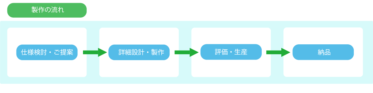 当社では、自社や国内開発協力企業で技術仕様の検討から開発・設計・評価を行っております。