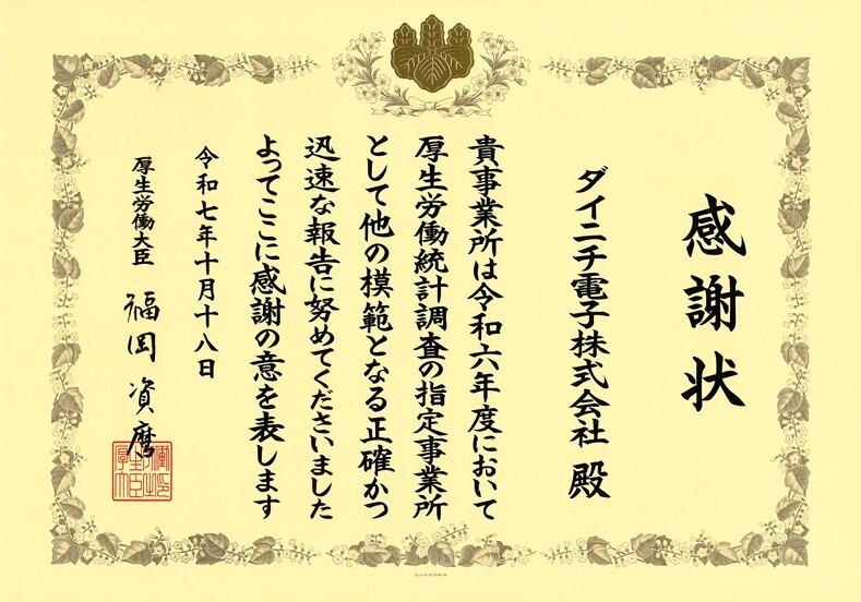 この表彰は、厚生労働省所管の統計調査の発展に尽力し、その業績・成績が特に顕著な個人及び事業所に対して、その功績をたたえ、功労に報いるとともに、統計調査の円滑な実施と、統計調査従事者の士気の高揚を図ることを目的として、厚生労働大臣が表彰しているものです。