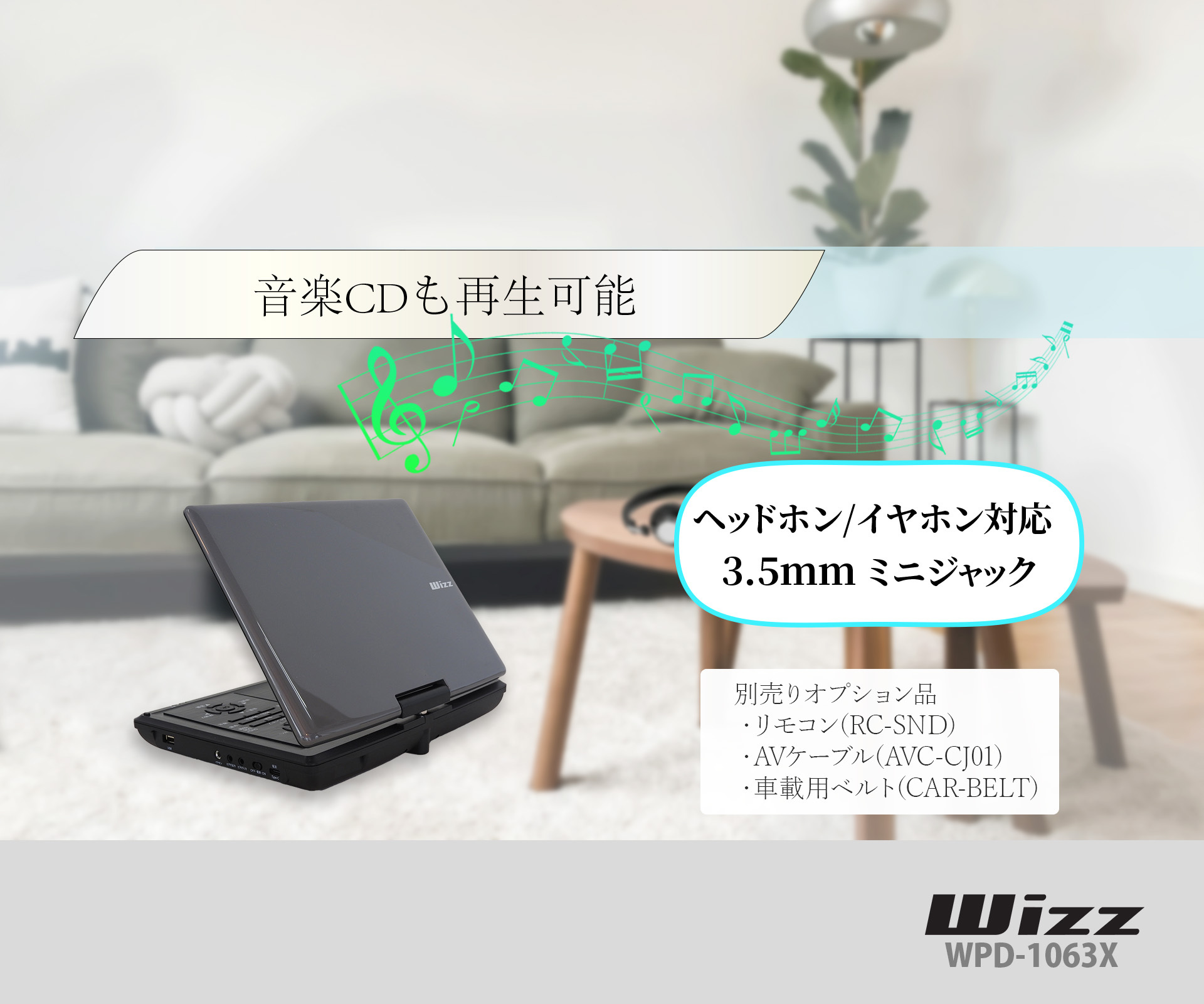 映像のみでなくCDプレイヤーとして持ち運ぶことも。イヤホンやヘッドフォンにも対応(ミニジャック)
